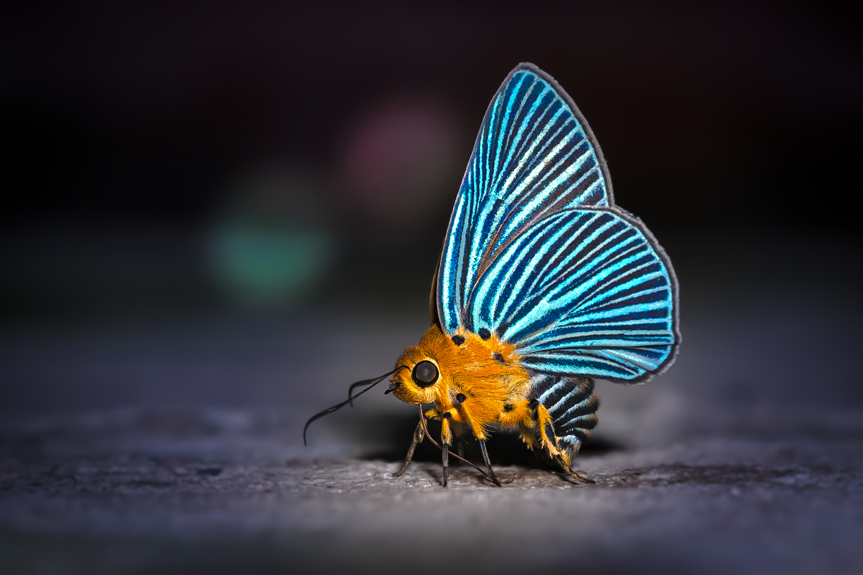 特徴:一度見たら忘れられない衝撃的な色彩と模様をしているセセリチョウ。