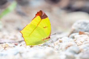 ふと河原の砂利を見ると、見たことない黄色い蝶が!!!!