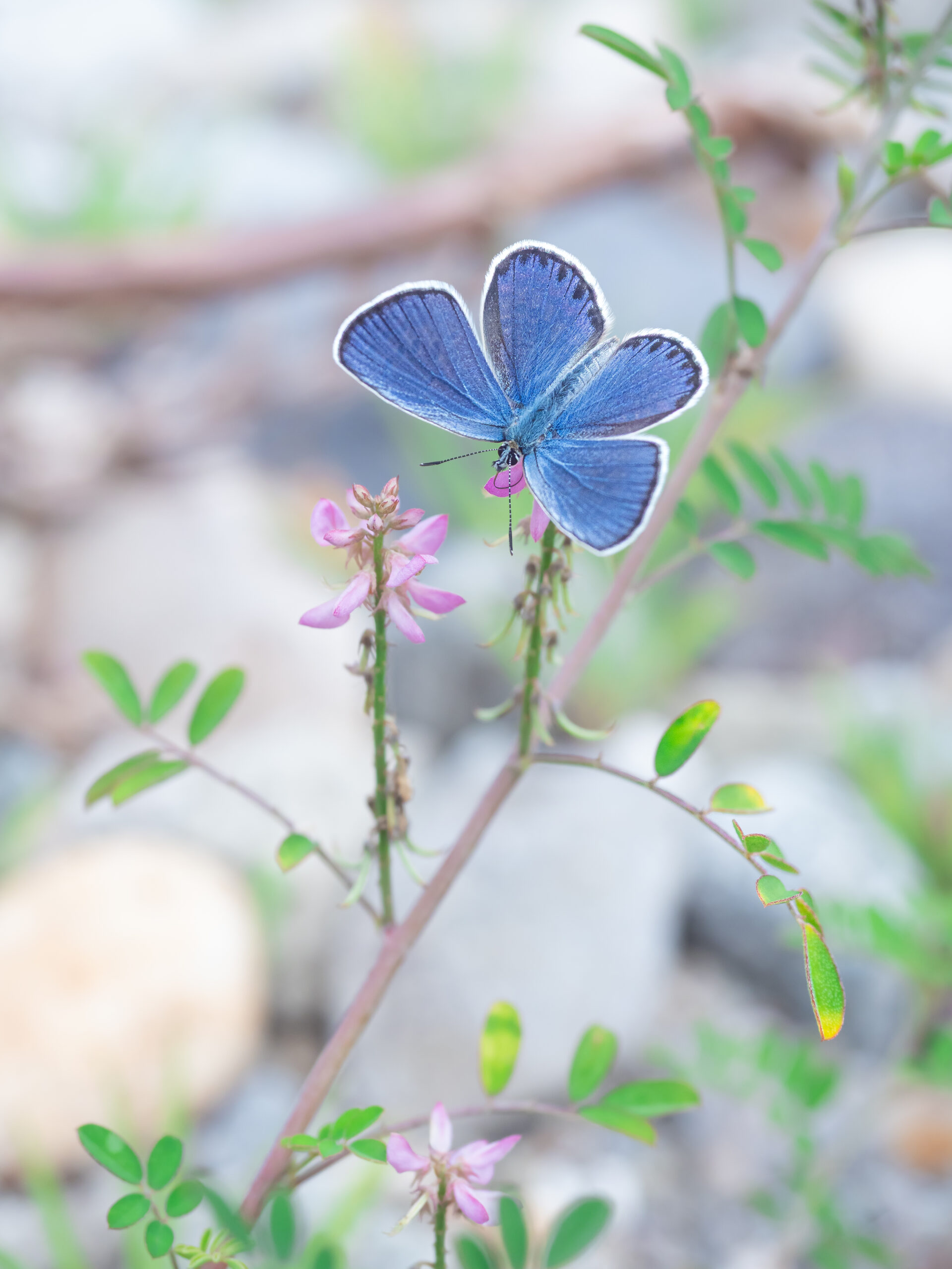 食草のコマツナギの生える草地や河川敷のような環境を好む。